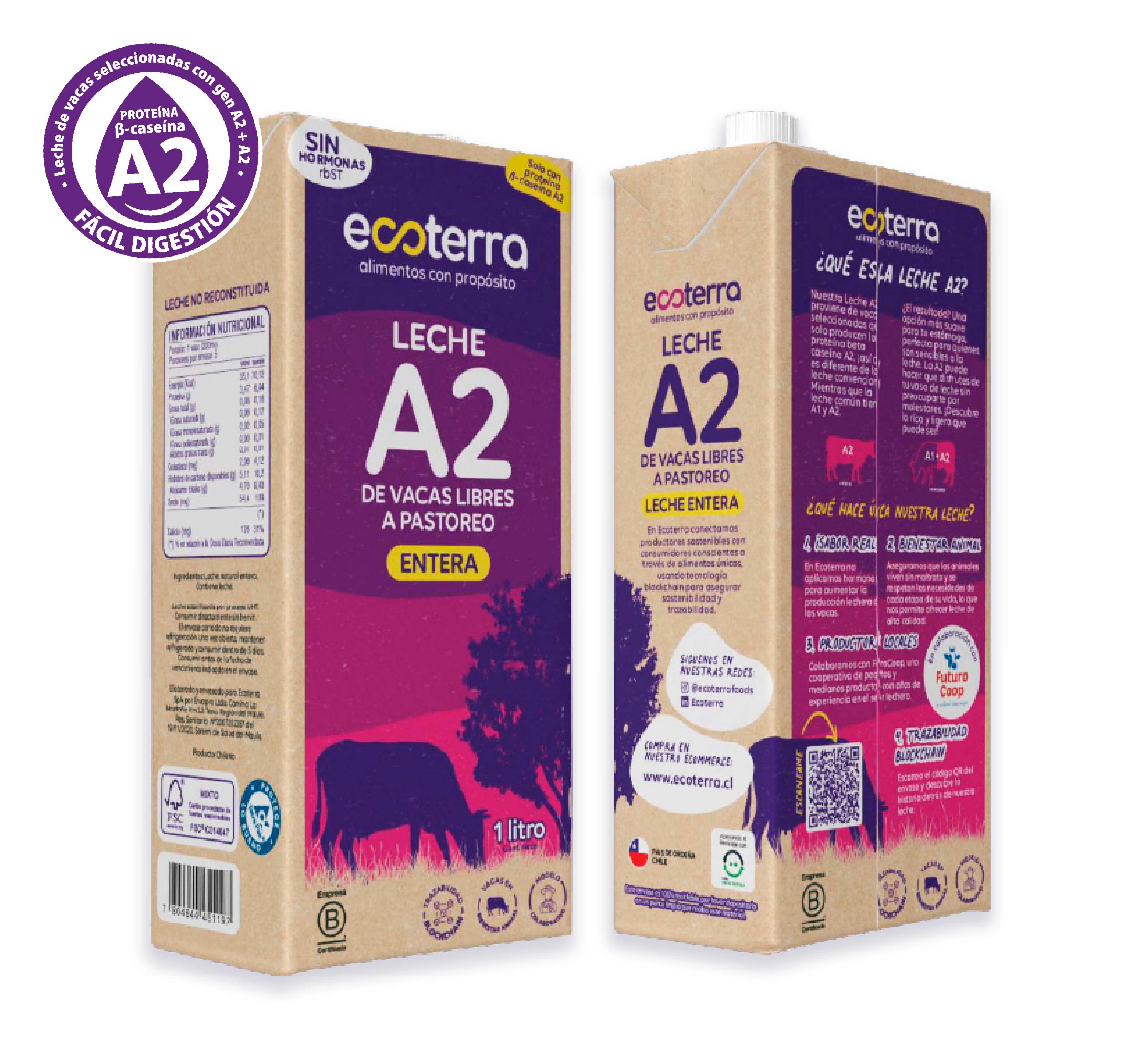 En conjunto con Ecoterra comercializamos nuestra leche A2 en envases larga vida de 1 litro. Y ya estamos produciendo otros productos derivados como quesos y mantequillas.